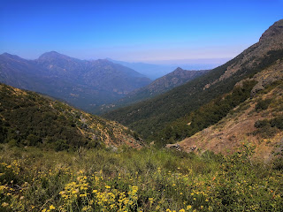 A small water fall in the valley was a very popular picnic spot and very crowded in this hot summer evening. Luckily I did not have to pay the entry fee as I was walking out. First it was too busy and crowded to camp, then everything was fenced in and in the end I had nearly reached the road. With a little detour I eventually found a decent campsite but I could still hear the noise from a nearby youth camp.