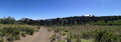 This section started with a long dirt road walk which would have been much nicer without the camping problem in populated areas. Everything was fenced in or a house nearby so that I was very happy when I found this little spot beside the dirt road. But when I was just falling asleep I heard shooting in the distance – and unfortunately the shots came closer and closer. Around midnight a truck with a group of rowdy hunters passed my campsite. What should I do? If I stayed quiet they might mistake my tent for an animal and shoot me. If I made myself apparent I would have to explain to a group of drunk guys what I was doing here in the middle of the night. I didn’t know what was more dangerous … I stayed quiet and the truck passed – only to come back at 3 am! But as I am still able to write this you will have guessed that luckily nothing happened to. But I was a bit sleep deprived the next day which started with a long ascent up to another volcanic plateau. And of course it was hot and of course there was not much water ….